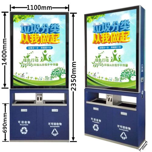 4、發布更多公益廣告,倡導文明環保:環保分類廣告垃圾箱獨特設計的雙面展示板面,為城市提供更多環保公益廣告。環保分類廣告垃圾箱就是社會公益道德和精神文明建設的重要陣地。